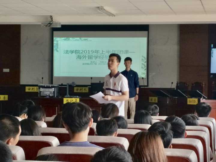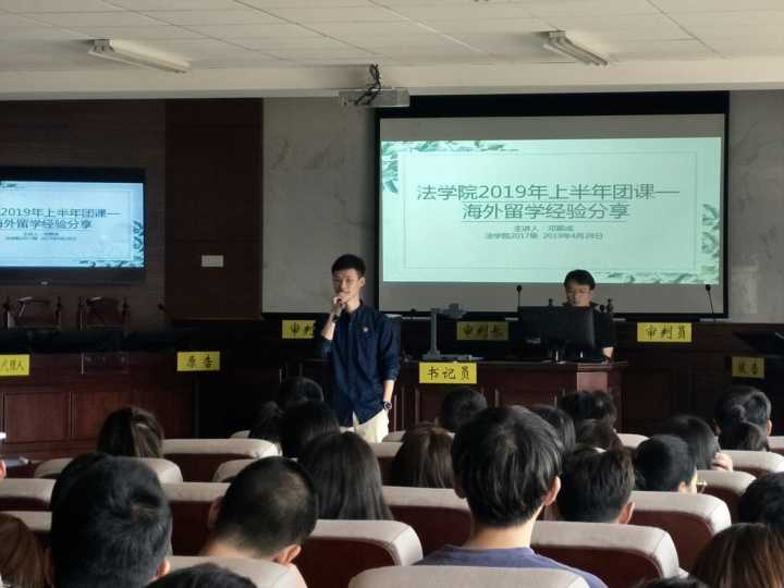为纪念“五四”青年节成立100周年,激发各团支部成员的爱国情怀,引导其发展和弘扬“五四”精神,2019年4月28日14时,由法学院团总支主办、2015级优秀学子邓卿成主讲的团课活动在模拟法庭和文知楼201教室同时举行。2017级辅导员幸达及各团支部均参与此次团课讲座活动。