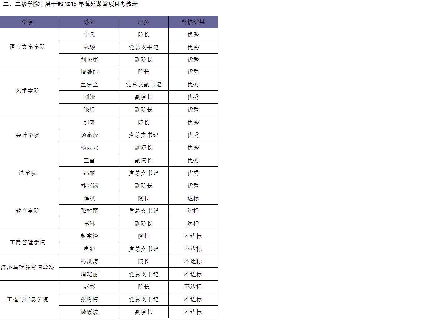 三、二级学院相关工作人员2015年海外课堂项目考核表