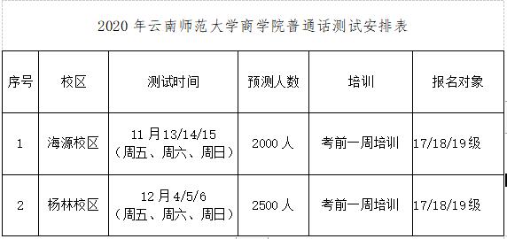 1. 测试时间:2020年11月13、14、15日(海源校区);2020年12月4、5、6日(杨林校区)(具体时间以准考证为准);