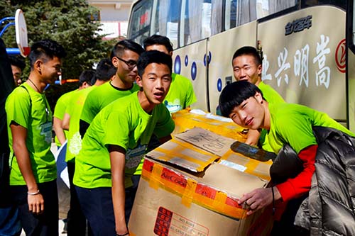 活动伊始,志愿者们首先为山脚小学的同学们送上一份爱心,包括为每个年级的贫困生学生赠送毛毯;为每班的三好学生送上书包;为山脚小学全体同学共159名同学送上文具、练习本、手套各一份;同时还给每个班送去了两幅羽毛球。最值得一提的是,在活动筹备之初,让每位献爱心的大学生们写了一张明信片,并由志愿者将同学们的祝福与寄语送到山脚小学,以激励同学们好好学习,长大后成为一名对社会有用的人。